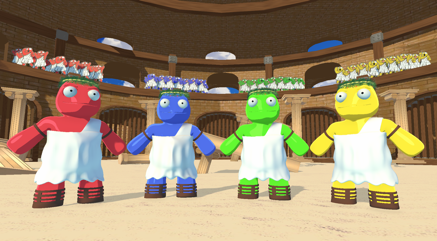O.M.G! is an asymmetrical, couch co-op platformer based on Greek mythology. Up to 3 players control gladiators that have to run, jump and push their way to the end of a level, while 1 player controls a powerful God with one mission: manipulate the level to stop them from reaching the goal.